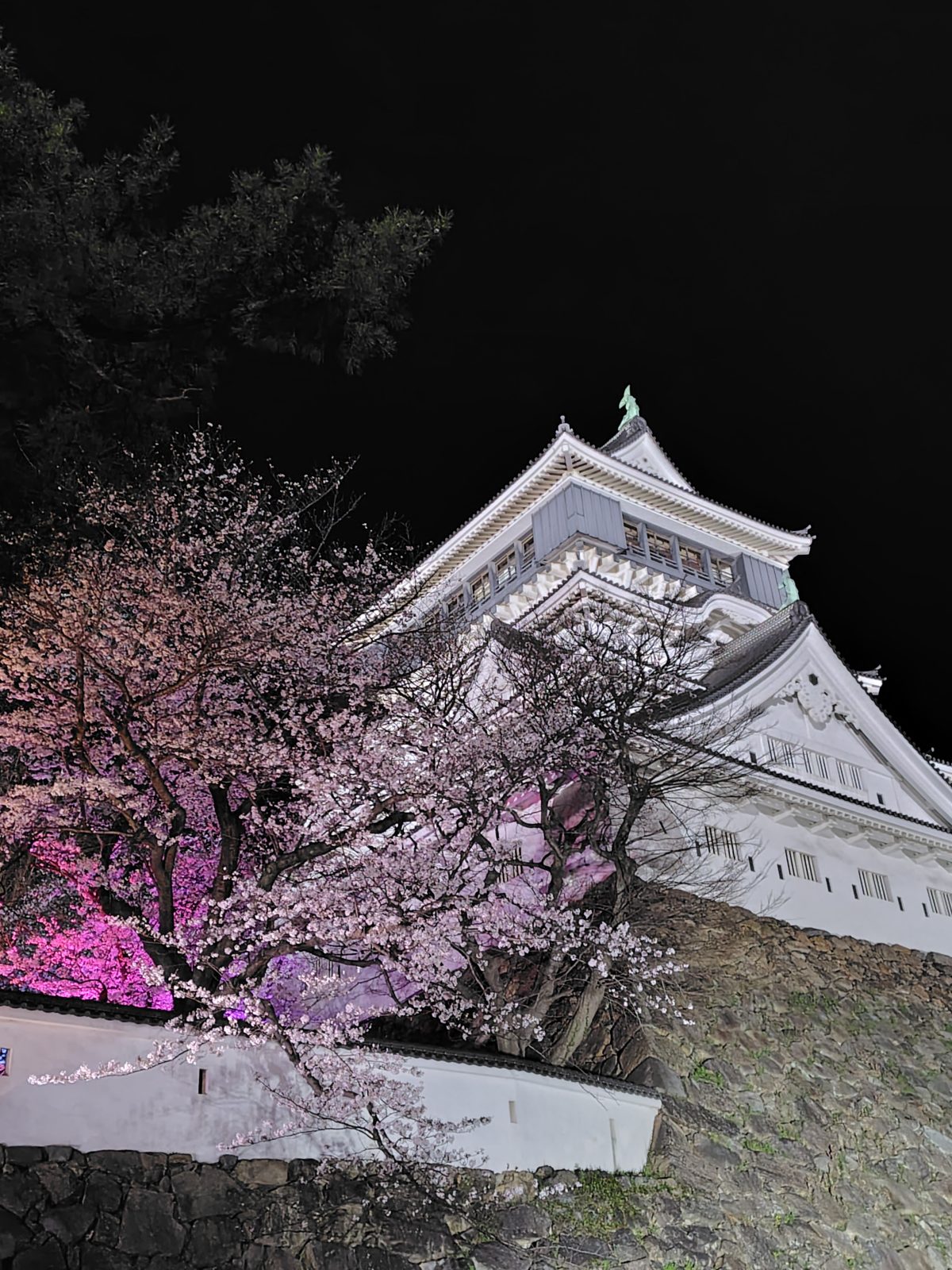 お寿司屋さんを去り、再びさきほどの小倉城に行きました。夜桜が見事でした!私は、ねらって行ったかのように、桜の季節に小倉に行ったのでした。ちょうど満開でした。