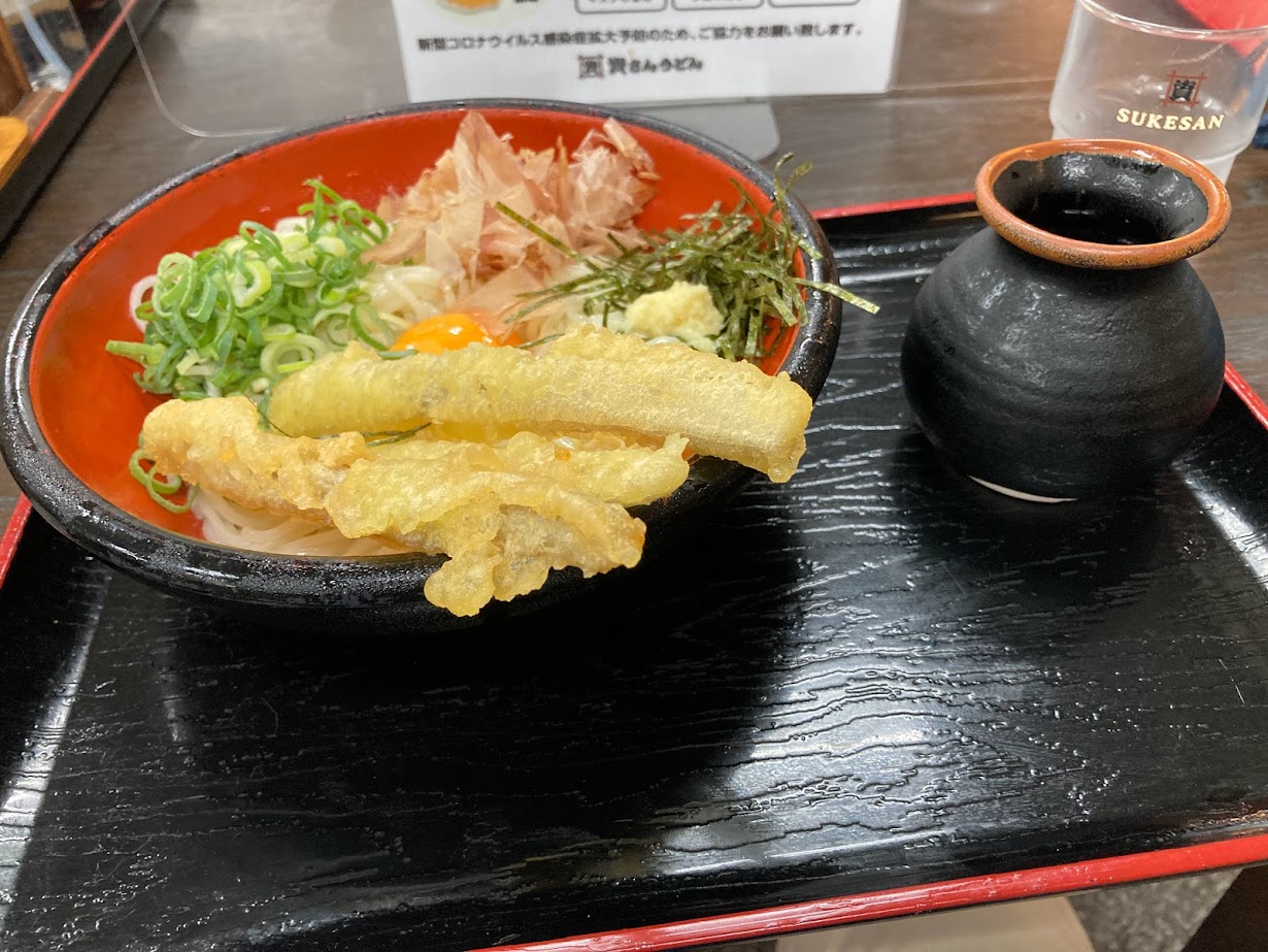 「ぶっかけうどん」の麺を細めん(さいめん)にしてもらいました。細めんも、5年前の滞在で覚えた食べ物です。とてもおいしかったです。最後にぼたもちも食べました。ぼたもちは資さんうどんの名物であったことを思い出して食べた次第です。