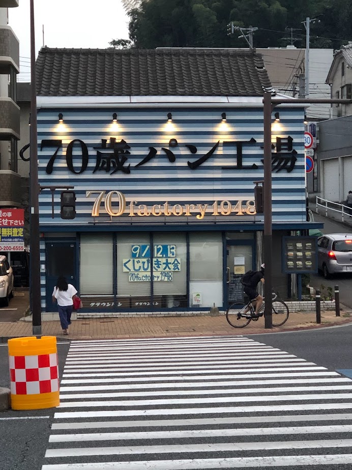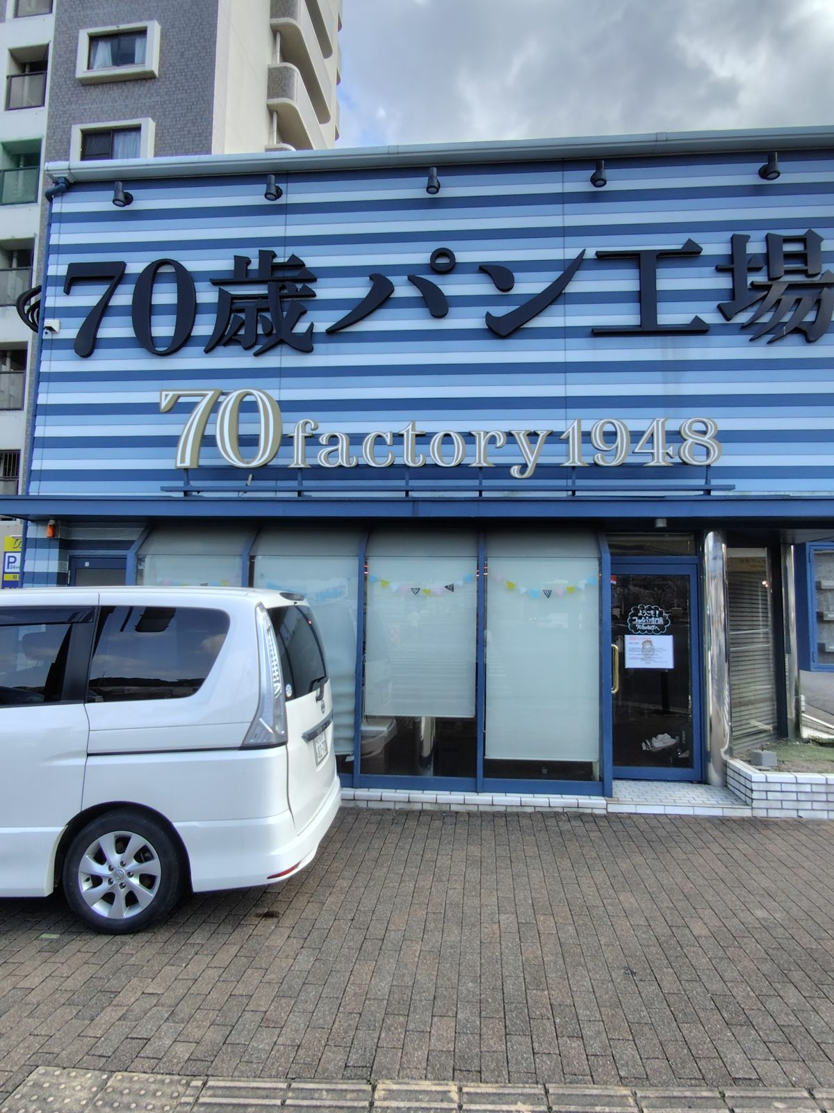 さて、動物園を出て、東八幡キリスト教会(ひがしやはたキリストきょうかい)という教会を目指しました。前に来たときは、この動物園と教会のあいだに、資さんうどん(すけさんうどん)というおいしいうどん屋さんがありましたが、なくなっていました。それで、教会に行きますと閉まっていました。お向かいにある抱樸館(ほうぼくかん)北九州もよく行ったところです。一階にレストランがあり、日替わりランチというのが名物なのです。しかし、時間が遅すぎて、ランチはやっていませんでした。そこで、この付近にあったうどん屋さんを探しました。しかし見つかりません。以下の「70歳パン工場」というのは、この付近にあるコッペパン屋さんです。しかし、3月31日で閉店していました。おととい、お寿司を食べていた日が最終日だったことになります。この日の写真です。