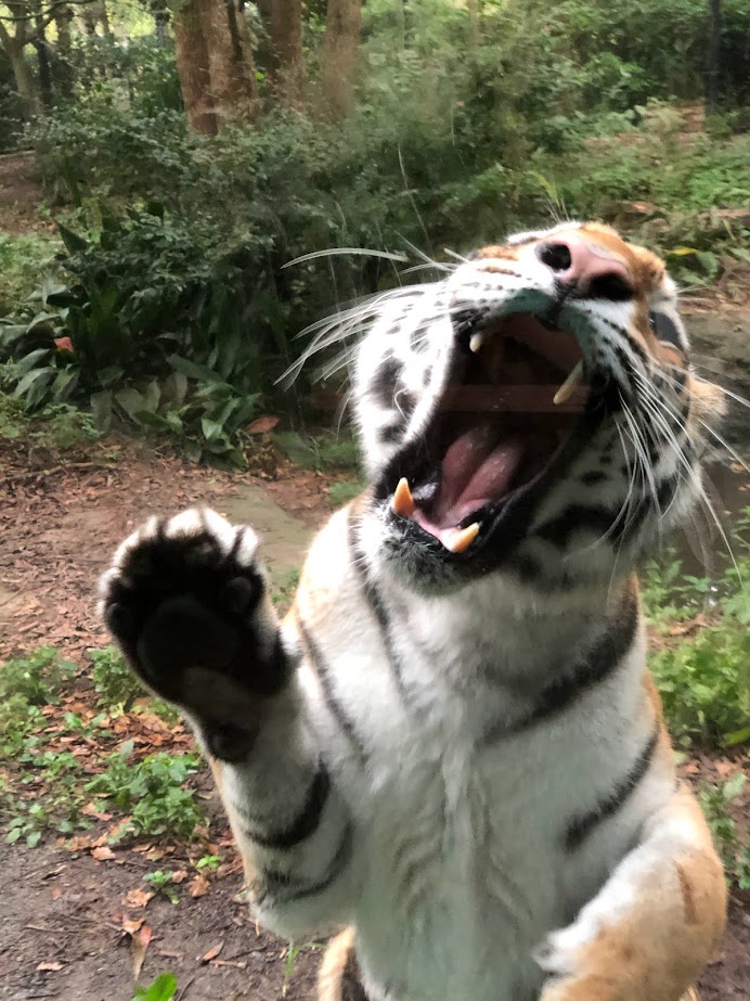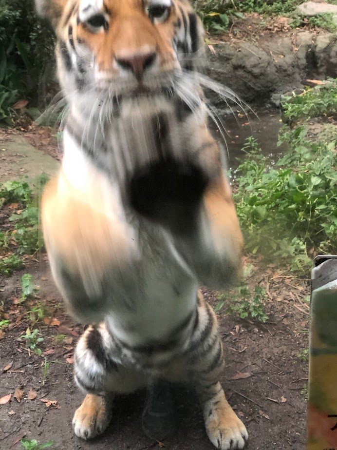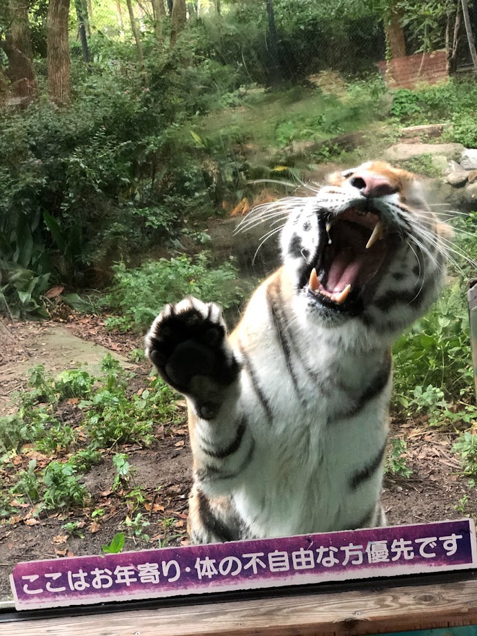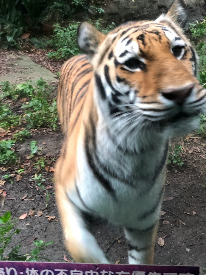 少し、過去の写真もはりますね。5年前にはじめてこの動物園を訪れたとき、それはコロナの最中で、閉演時間間近で、小雨の降っているときでしたが、以下のように、アムールトラのミライ(メス)が、大サービスをしてくれたのです。
